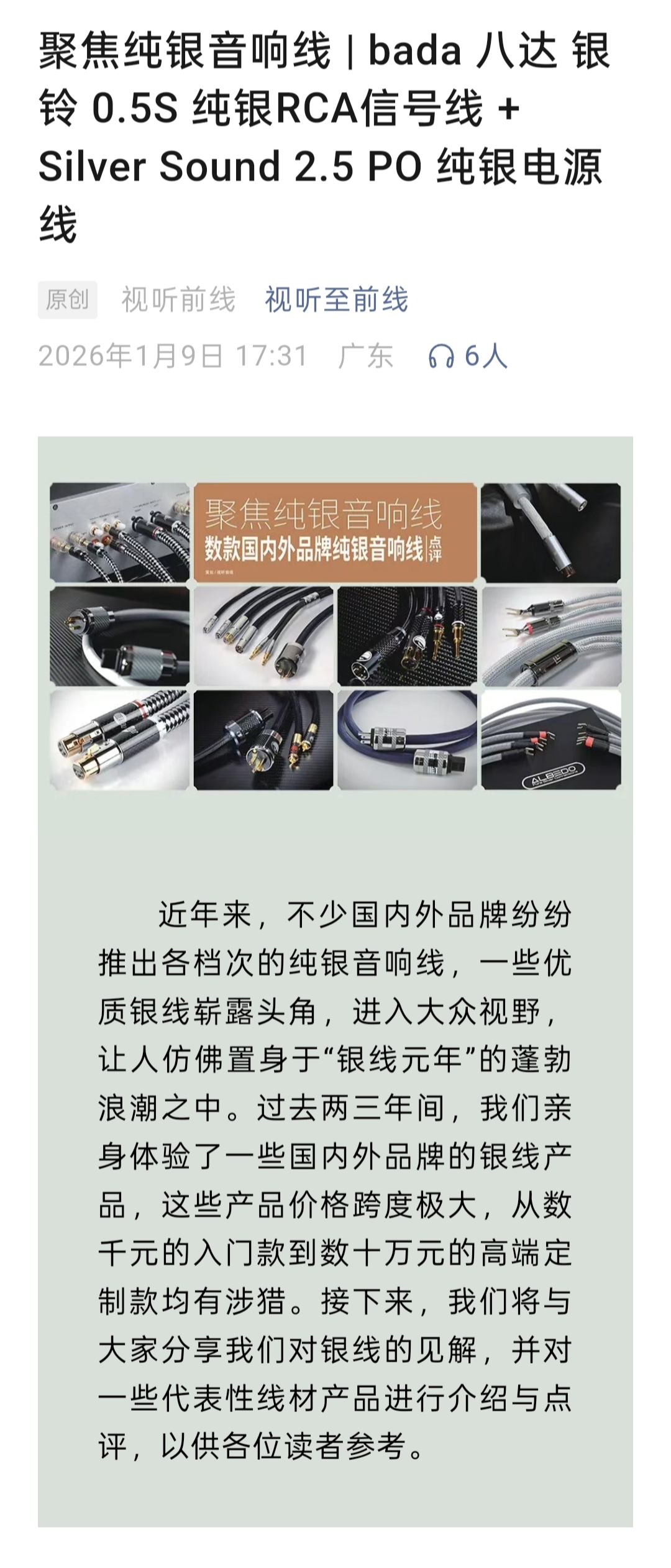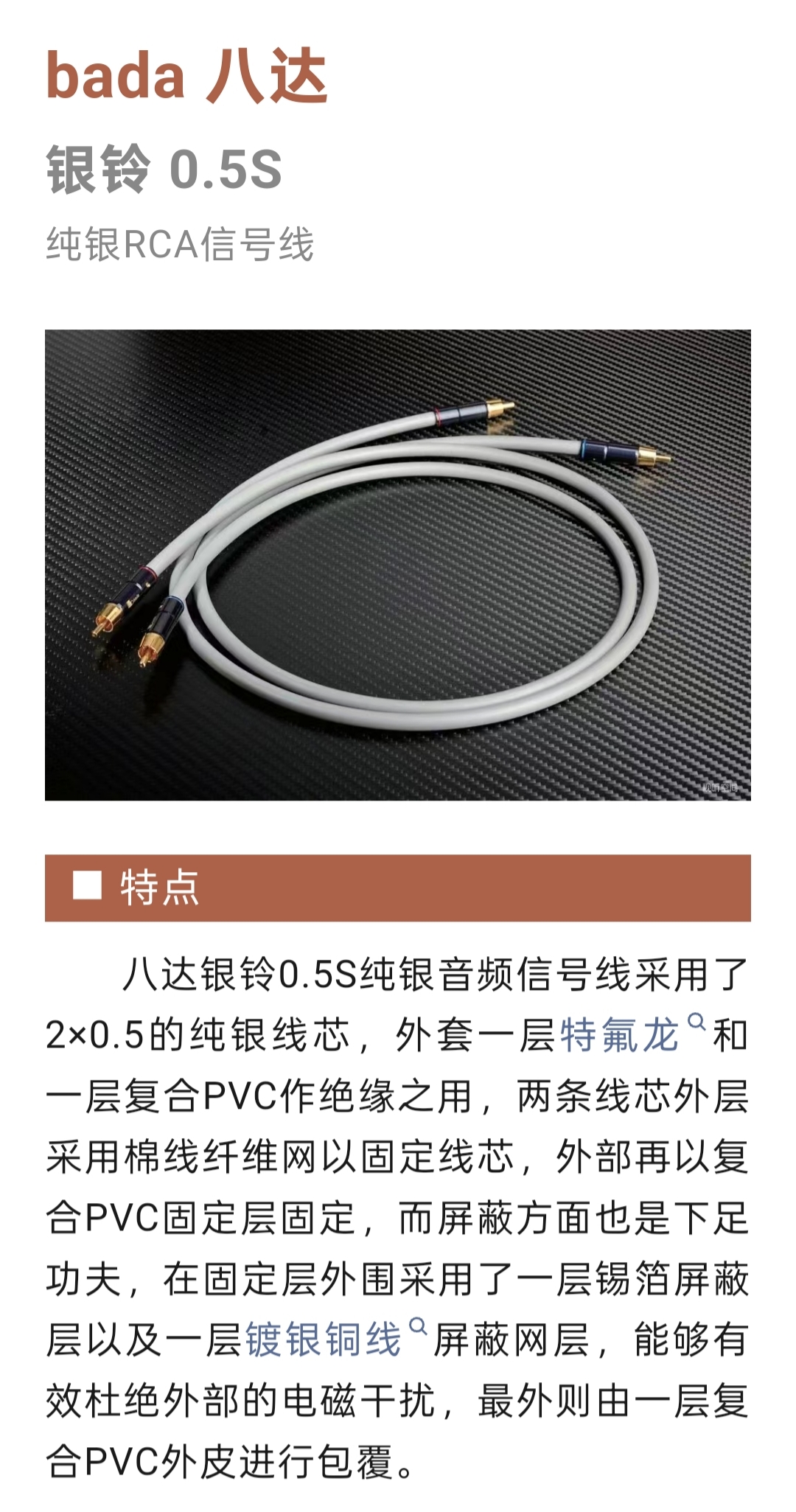 转发<<视听至前线>>点评:聚焦纯银音响线 | bada 八达 银铃 0.5S 纯银RCA信号线 + Silver Sound 2.5 PO 纯银电源线